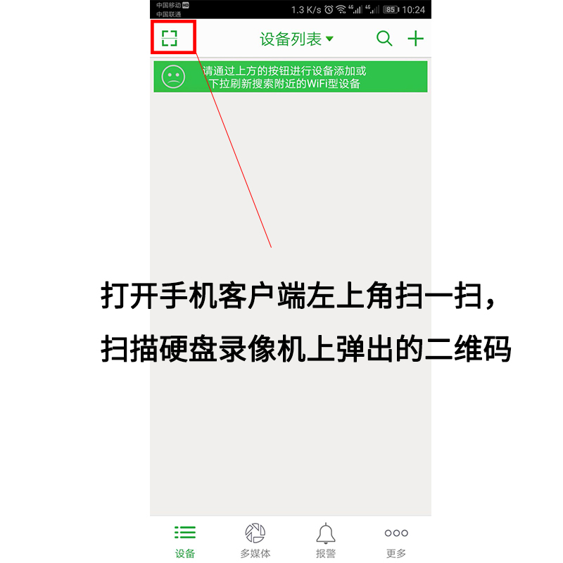 3.打開“seetong”客戶端左上角的掃一掃,掃描硬盤錄像機彈出的臨時二維碼;