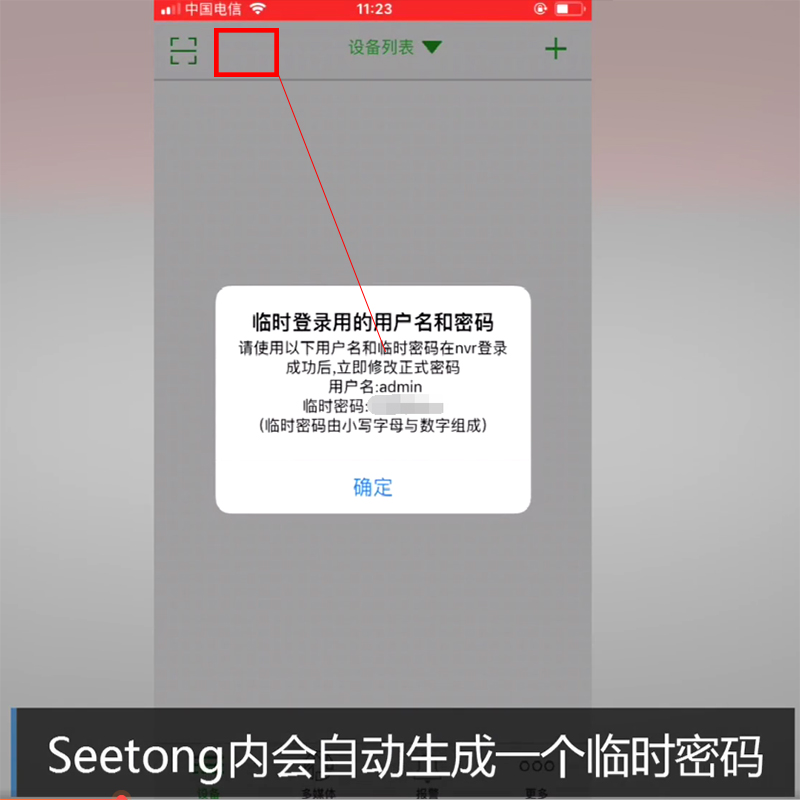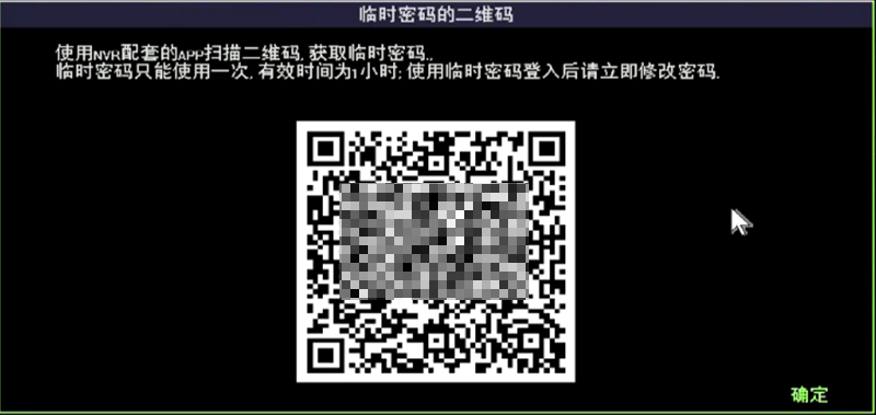 4.掃描后“seetong”會生成一個臨時的密碼,在硬盤錄像機的登錄界面輸入臨時密碼,登陸成功后按照提示重新設置密碼即可。