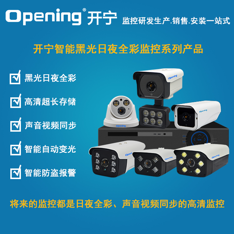 開寧智能黑光全彩網(wǎng)絡(luò)高清攝像機,24小時日夜全彩監(jiān)控,夜晚監(jiān)控如白天,徹底告別黑白夜視,聲音與視頻同步監(jiān)控。