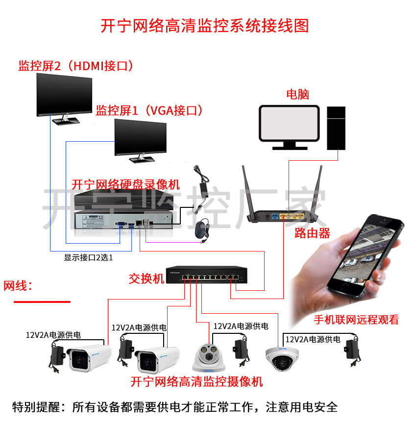 注:此方式適合非POE網(wǎng)絡(luò)監(jiān)控系統(tǒng)使用