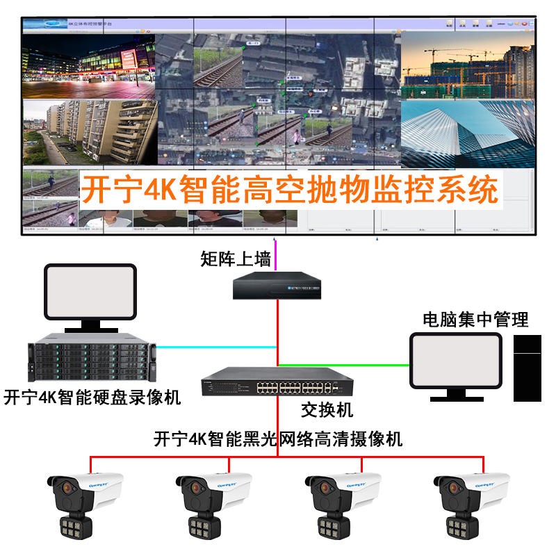 本方案可采用網(wǎng)絡(luò)高清監(jiān)控?cái)z像機(jī)進(jìn)行布控,采用開(kāi)寧500萬(wàn)智能黑光網(wǎng)絡(luò)高清攝像機(jī)或4K智能黑光網(wǎng)絡(luò)高清攝像機(jī)和4K網(wǎng)絡(luò)高清硬盤(pán)錄像機(jī)組成開(kāi)寧高空拋物監(jiān)控系統(tǒng)進(jìn)行布控,下面以開(kāi)寧4K智能黑光網(wǎng)絡(luò)高清攝像機(jī)為例。