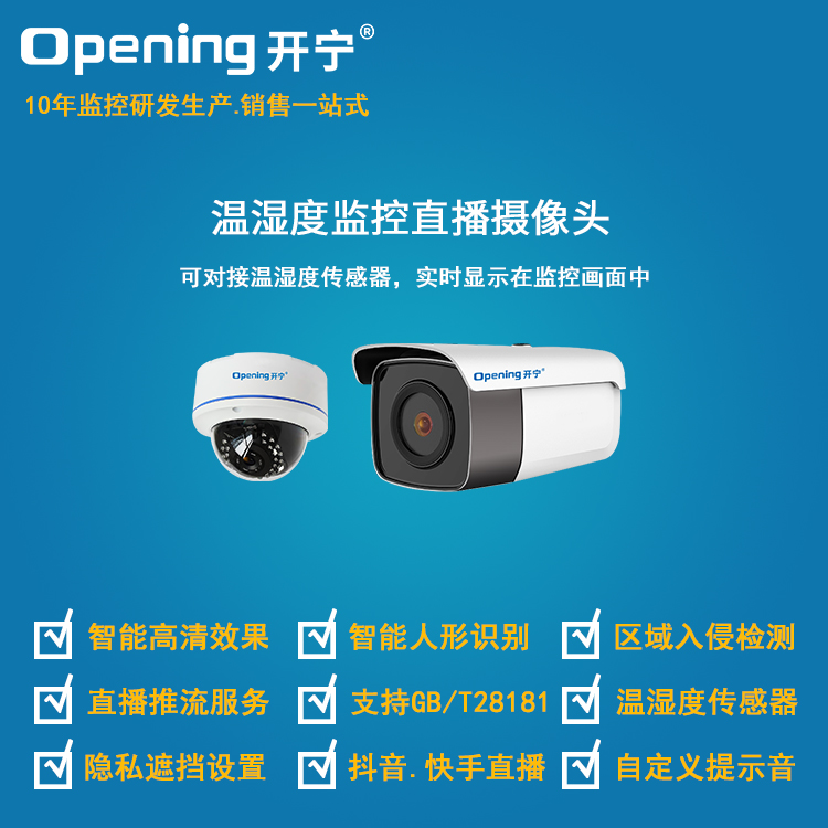 開寧溫濕度監(jiān)控種植解決方案,采用開寧溫濕度監(jiān)控?cái)z像頭部署在大棚內(nèi)外,傳感器安裝在相應(yīng)的區(qū)域,探測環(huán)境的溫濕度,用戶可通過手機(jī)電腦客戶端實(shí)時(shí)觀看監(jiān)控畫面!