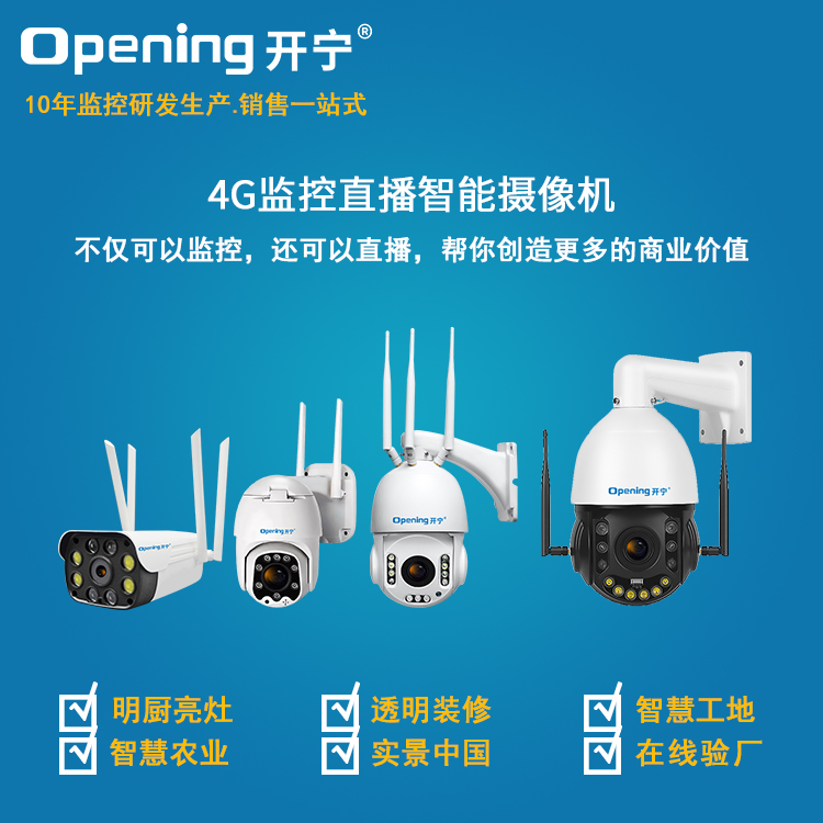 要想實(shí)現(xiàn)“慢直播”,只需要一臺(tái)電腦和一臺(tái)開(kāi)寧監(jiān)控直播攝像機(jī),慢直播設(shè)備大多長(zhǎng)時(shí)間安裝在戶外進(jìn)行固定角度直播,那么該設(shè)備就需要能在戶外安裝,并且使用4G/5G網(wǎng)絡(luò)等方式進(jìn)行傳輸視頻,設(shè)備還要具備防水能力!開(kāi)寧“慢直播”監(jiān)控直播攝像機(jī)設(shè)備可根據(jù)直播場(chǎng)景選購(gòu)不同的設(shè)備,以下是開(kāi)寧監(jiān)控直播攝像機(jī)系列產(chǎn)品,適用于各大慢直播應(yīng)用場(chǎng)景!