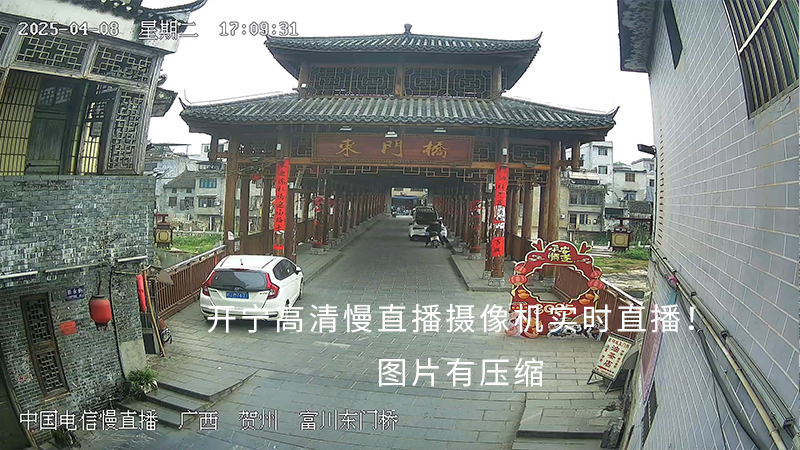 廣西賀州富川瑤族自治縣老城區(qū),東門橋如一條青黛色的紐帶,橫跨在秀美的富江之上。這座始建于明代的石拱橋,由青石板鋪就的橋面被歲月磨得溫潤(rùn)發(fā)光,弧形橋身與水中倒影構(gòu)成完美的“圓”,兩側(cè)護(hù)欄上隱約可見(jiàn)的瑤族圖騰雕花,承載著瑤漢同胞世代共生的記憶。作為富川“古八景”之一,東門橋不僅是連接老城與瑤寨的交通要道,更是瑤族同胞趕圩、節(jié)慶聚會(huì)的核心場(chǎng)所,但因地處桂北山區(qū),其“古橋映江、瑤風(fēng)拂面”的獨(dú)特景致,難以被遠(yuǎn)方游客知曉。為打破地域阻隔,當(dāng)?shù)匚穆貌块T聯(lián)合中國(guó)電信與開(kāi)寧科技,以開(kāi)寧高清全彩慢直播攝像機(jī)為核心,搭建東門橋?qū)崟r(shí)慢直播體系,讓這座千年古橋的韻味通過(guò)鏡頭觸達(dá)全國(guó)。
