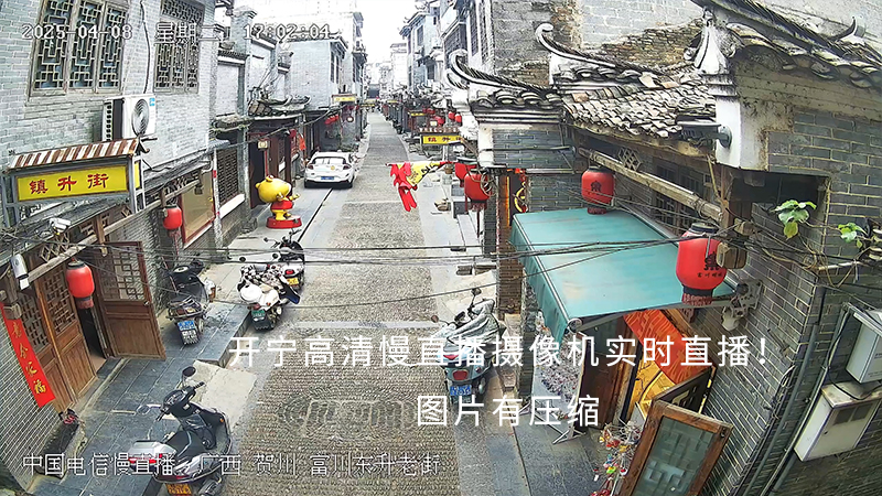 廣西賀州富川瑤族自治縣老城區(qū),東升老街如一卷攤開的瑤鄉(xiāng)風(fēng)情畫。青石板路被千年步履磨出溫潤弧度,兩側(cè)騎樓的木質(zhì)窗欞雕著瑤族盤王紋,瑤繡鋪的彩線在陽光下跳躍,打油茶的香氣混著市井喧鬧漫過街巷。這條串聯(lián)起明清古建與瑤族生活的老街,是富川“活態(tài)文化遺產(chǎn)”——清晨的晨市擺滿瑤家果蔬,午后的非遺工坊傳出織機聲響,傍晚的燈籠亮起映紅路人臉龐。但因藏于桂北山區(qū),這份“瑤風(fēng)與市井共生”的獨特韻味,難以被遠方游客知曉。為打破地域阻隔,當(dāng)?shù)匚穆貌块T聯(lián)合中國電信與開寧科技,以開寧高清全彩