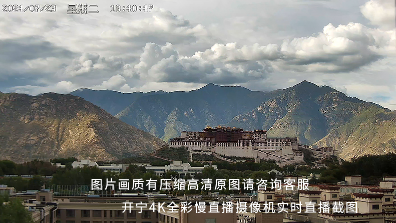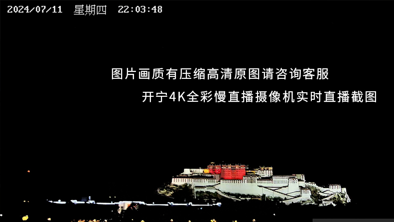 開寧4K全彩高清慢直播智能球機的應用,為這一需求提供了完美解決方案。慢直播設備搭載的4K超高清成像技術,能精準捕捉布達拉宮的建筑細節(jié)——紅宮的鎏金頂在陽光下的光澤、白宮墻體的層次肌理、經(jīng)幡飄動的弧度,都被清晰定格,讓鏡頭前的觀者仿佛置身酒店觀景臺。