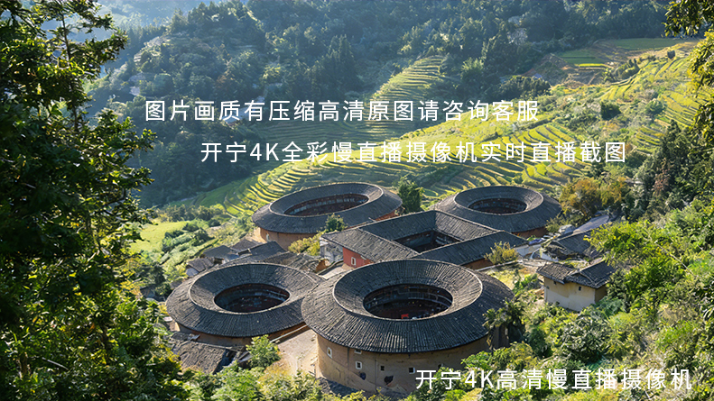 福建南靖土樓田螺坑景區(qū)使用開寧4K全彩高清攝像機慢直播