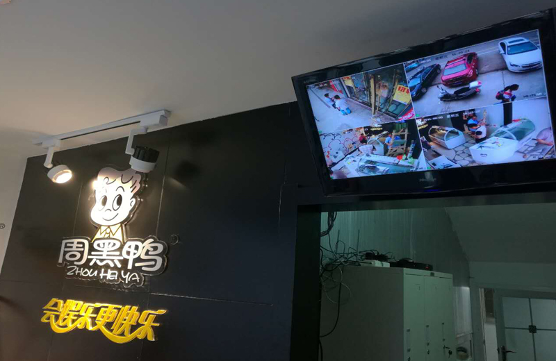 周黑鴨整個監(jiān)控顯示器安裝墻壁上即節(jié)省了空間又起到震懾作用