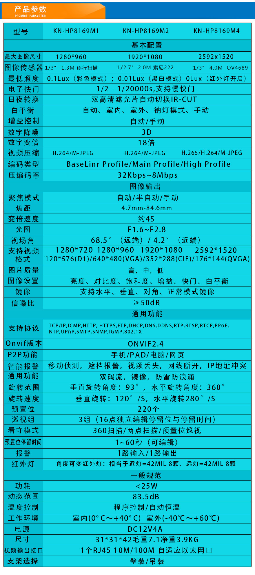 - 網(wǎng)絡(luò)智能球機(jī) KN-HP8169