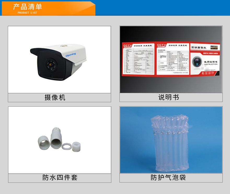 ★4顆晶元LED紅外陣列燈,紅外15-50米,300萬高清定焦鏡頭(4mm/6mm/8mm可選),IP66防水全金屬外觀,DC12V供電。