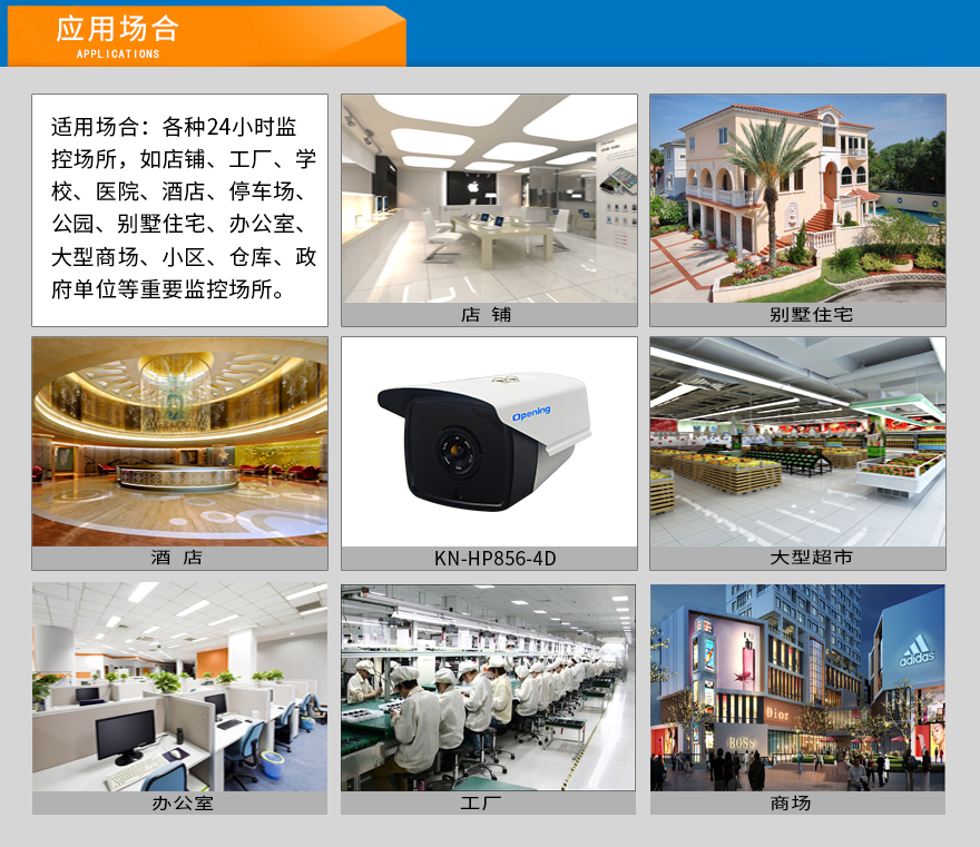 ★適用場合:小區(qū)、工業(yè)園區(qū)、學(xué)校、工廠、店鋪、倉庫、辦公室、商場、別墅住宅、果園、養(yǎng)殖場、停車場、醫(yī)院、公園、政府單位等監(jiān)控場所。