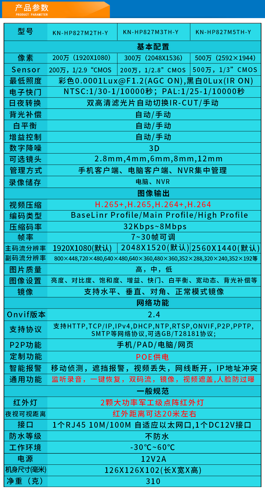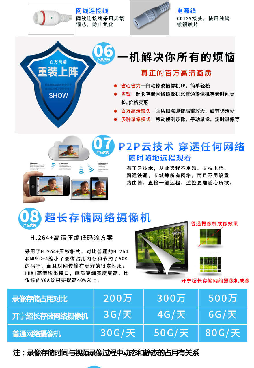 ★超長(zhǎng)存儲(chǔ)、1080P/1536P/1944P(200萬(wàn)/300萬(wàn)/500萬(wàn))、智能高清、全網(wǎng)通、低碼流、低照度、低功耗、H.264+/H.265+雙碼流、防靜電、防浪涌、過壓保護(hù)、移動(dòng)偵測(cè)報(bào)警。
