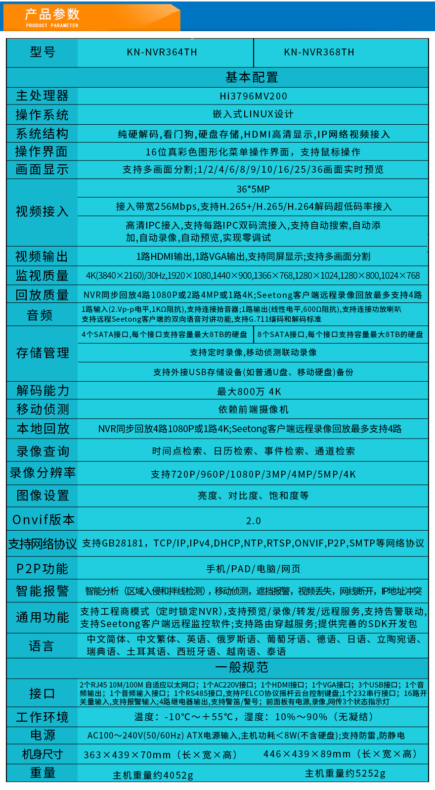 - 36路4盤位/8盤位網(wǎng)絡(luò)硬盤錄像機 KN-NVR364/8TH