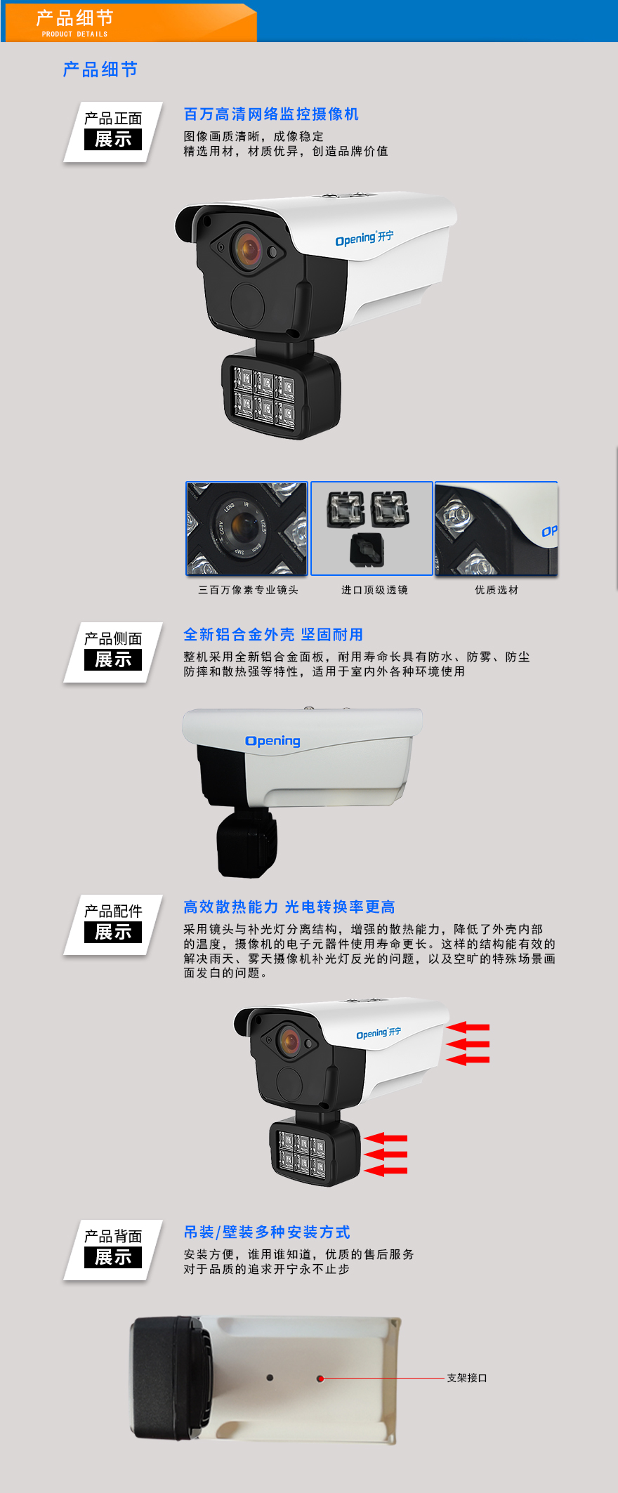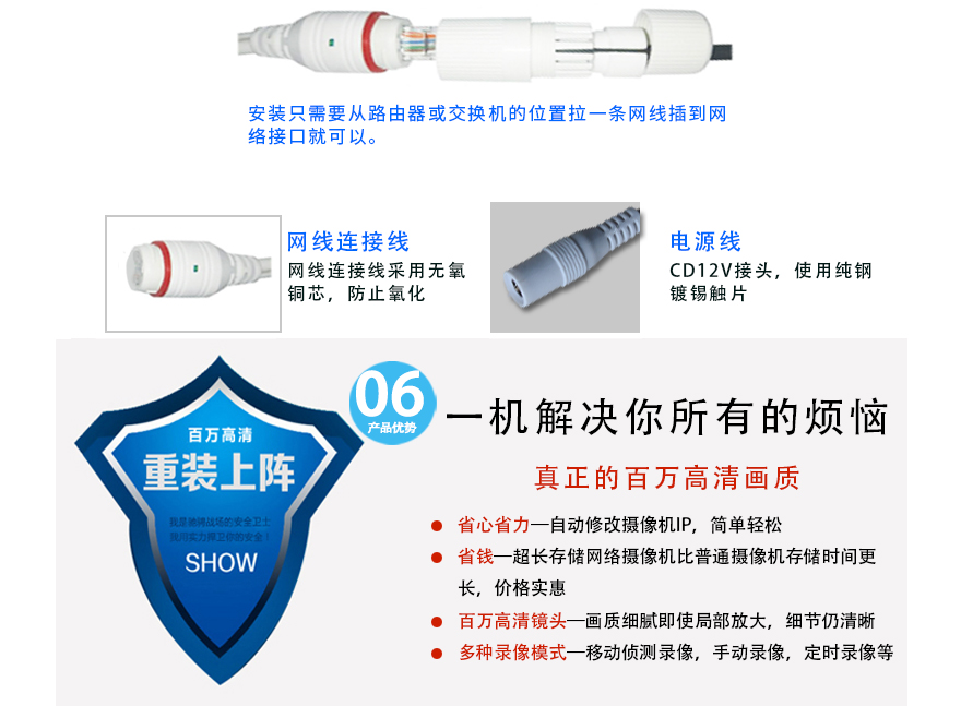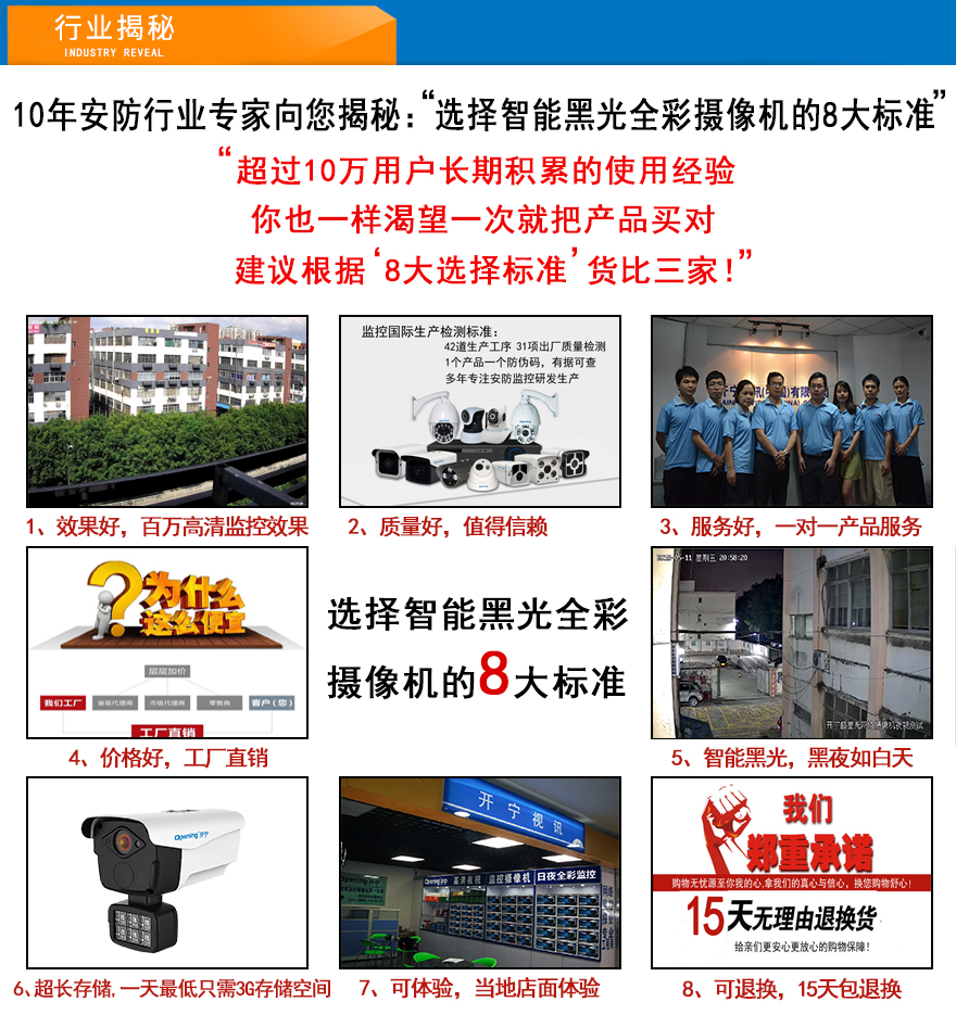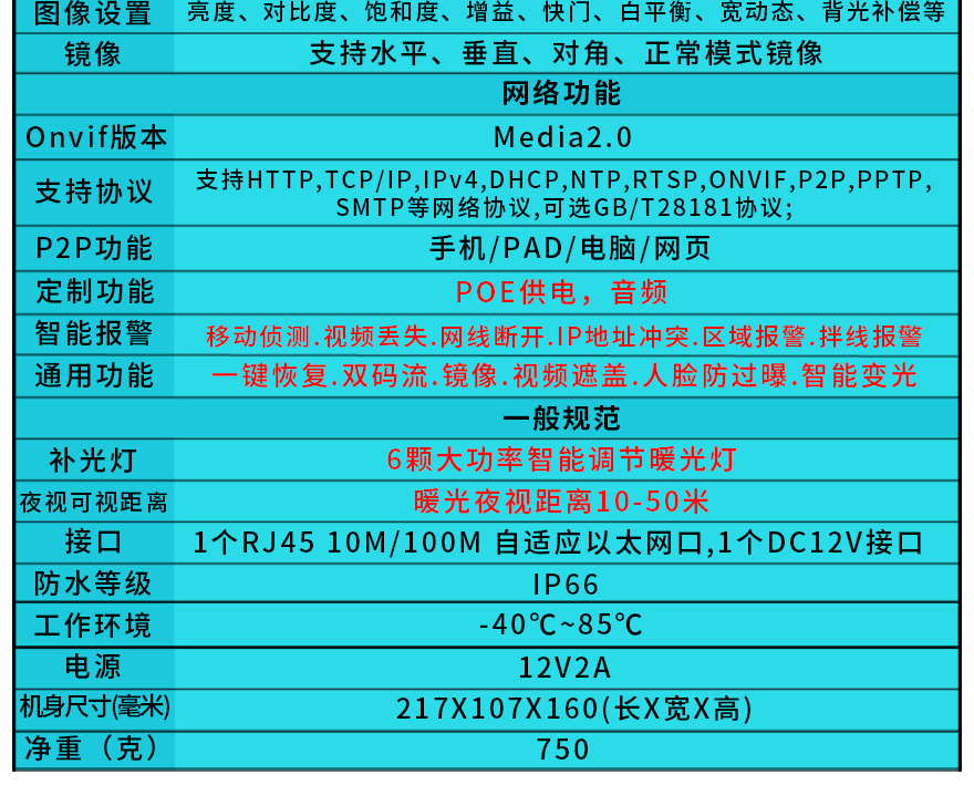 ★智能自動(dòng)變光,6顆美國(guó)普瑞LED暖光陣列燈,暖光10-50米,F(xiàn)1.0黑光專用高清定焦鏡頭/星光級(jí)專用高清監(jiān)控定焦專用鏡頭/超長(zhǎng)存儲(chǔ)高清監(jiān)控專用鏡頭可選(4mm/6mm可選),IP66防水金屬外觀,DC12V供電。