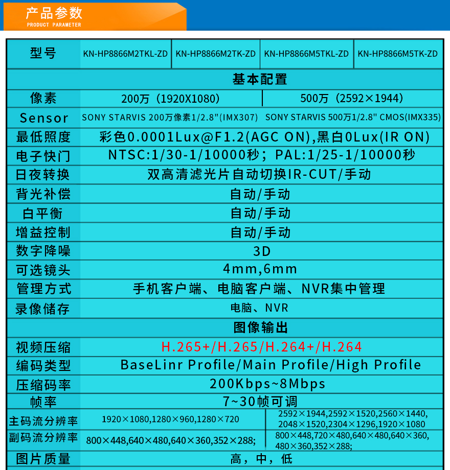- 智能黑光全彩高清攝像機(jī) KN-HP8866-ZD