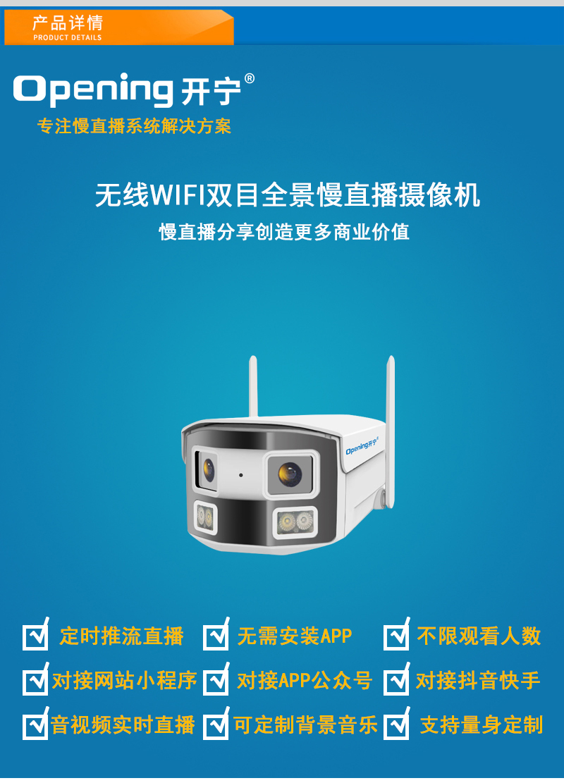 - 1、400萬(wàn)雙目拼接雙光槍式慢直播攝像機(jī),1個(gè)攝像機(jī)就是一套慢直播系統(tǒng);雙目拼接180度超廣角;
