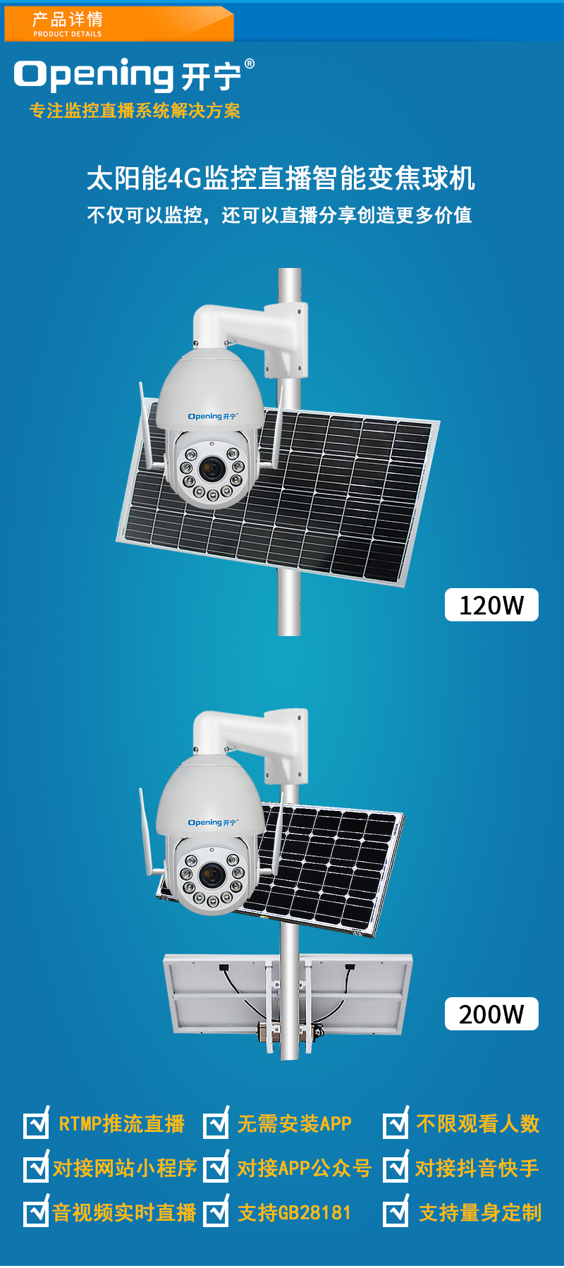 14、可另外配置高清晰大功率喇叭,APP語音對講,智能語音警戒報警;可另選配太陽能供電系統(tǒng);