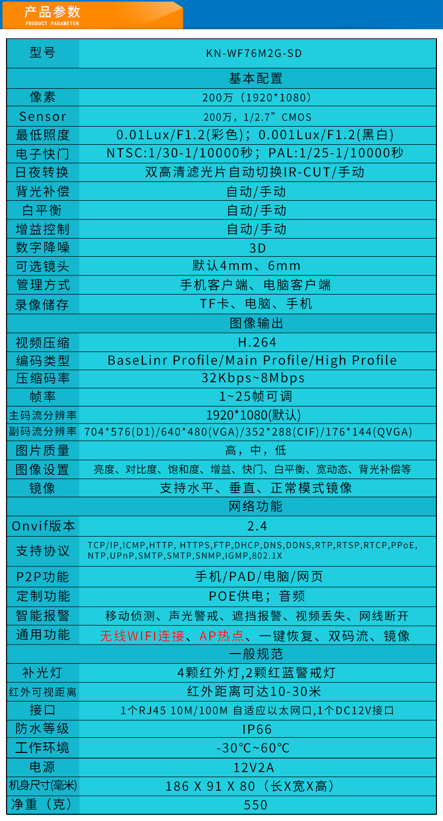 - 無線智能聲光警戒攝像機(jī) KN-WF76M2G-SD