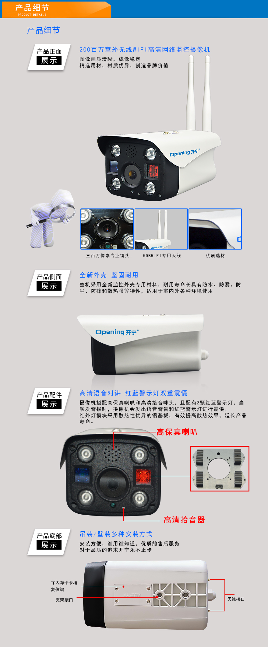 3、智能高清(1080P)200萬像素,隨時(shí)隨地手機(jī)/電腦遠(yuǎn)程觀看;