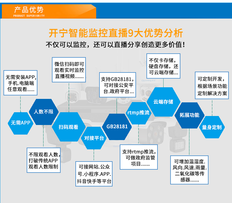 7、支持GB28181協(xié)議;可接公安.食品.工地.生產.教育.畜牧.旅游等監(jiān)管部門平臺;