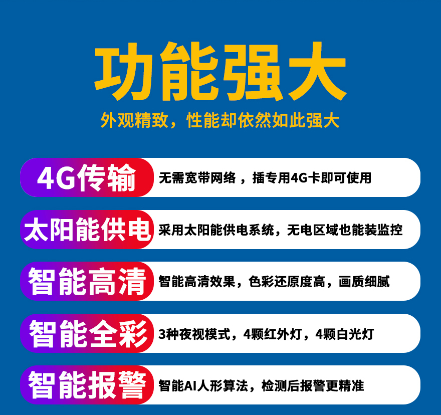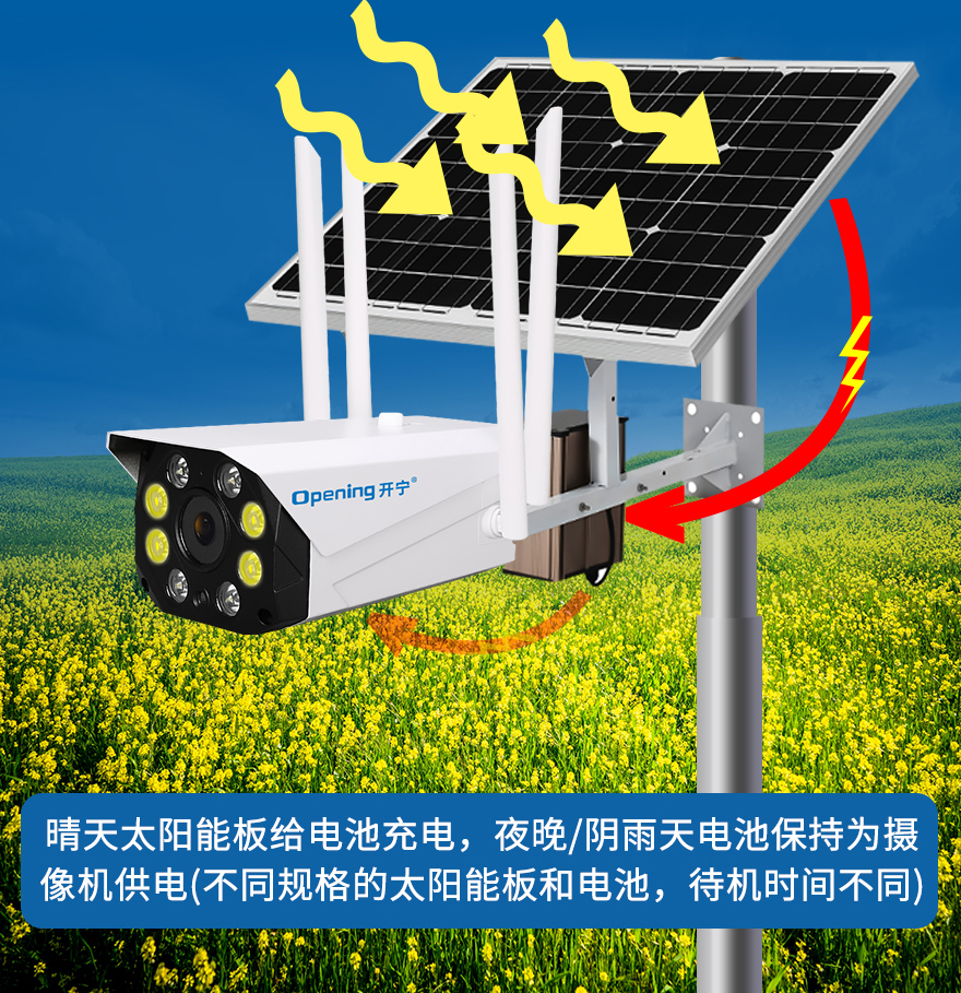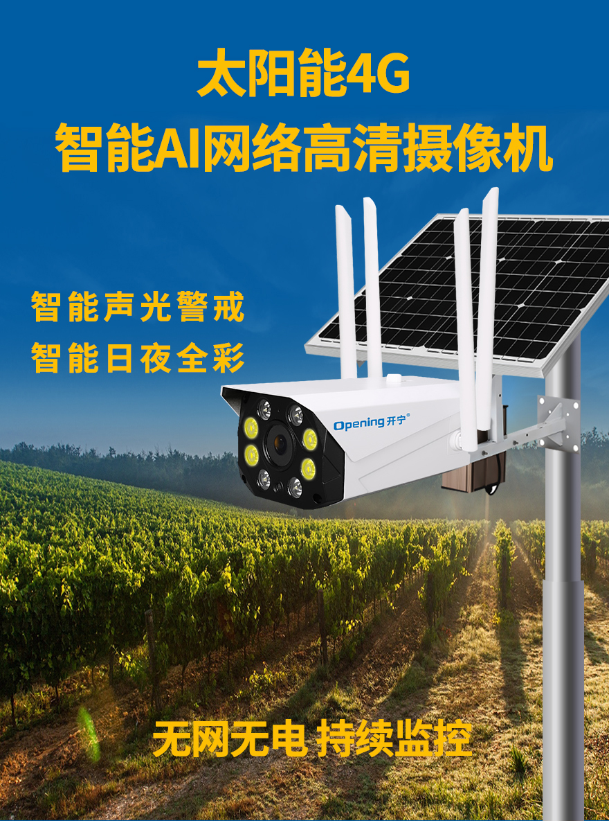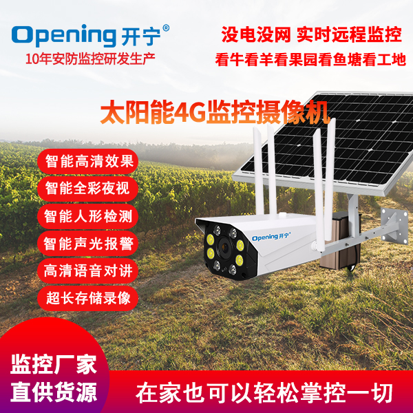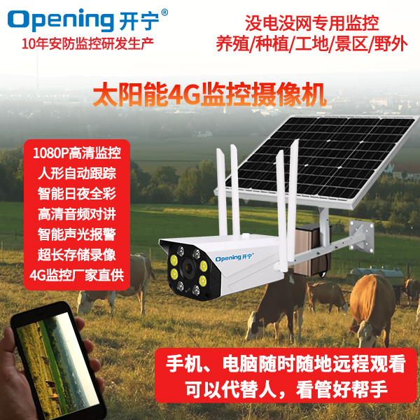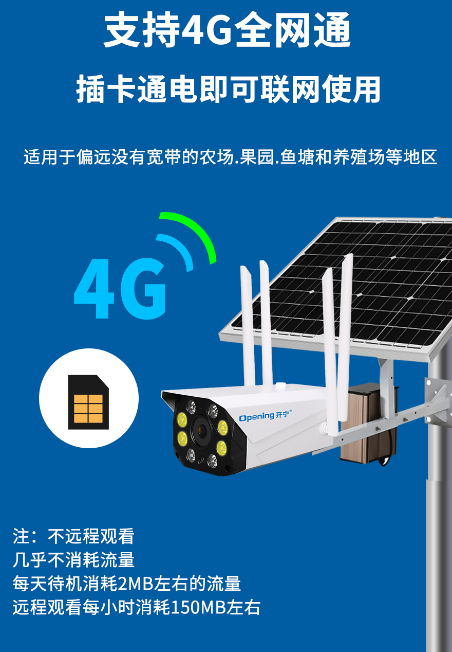 - ★這是一款開(kāi)寧4G無(wú)線太陽(yáng)能供電監(jiān)控系統(tǒng),一個(gè)機(jī)器就相當(dāng)于一套監(jiān)控系統(tǒng),無(wú)電無(wú)網(wǎng)也可以使用;