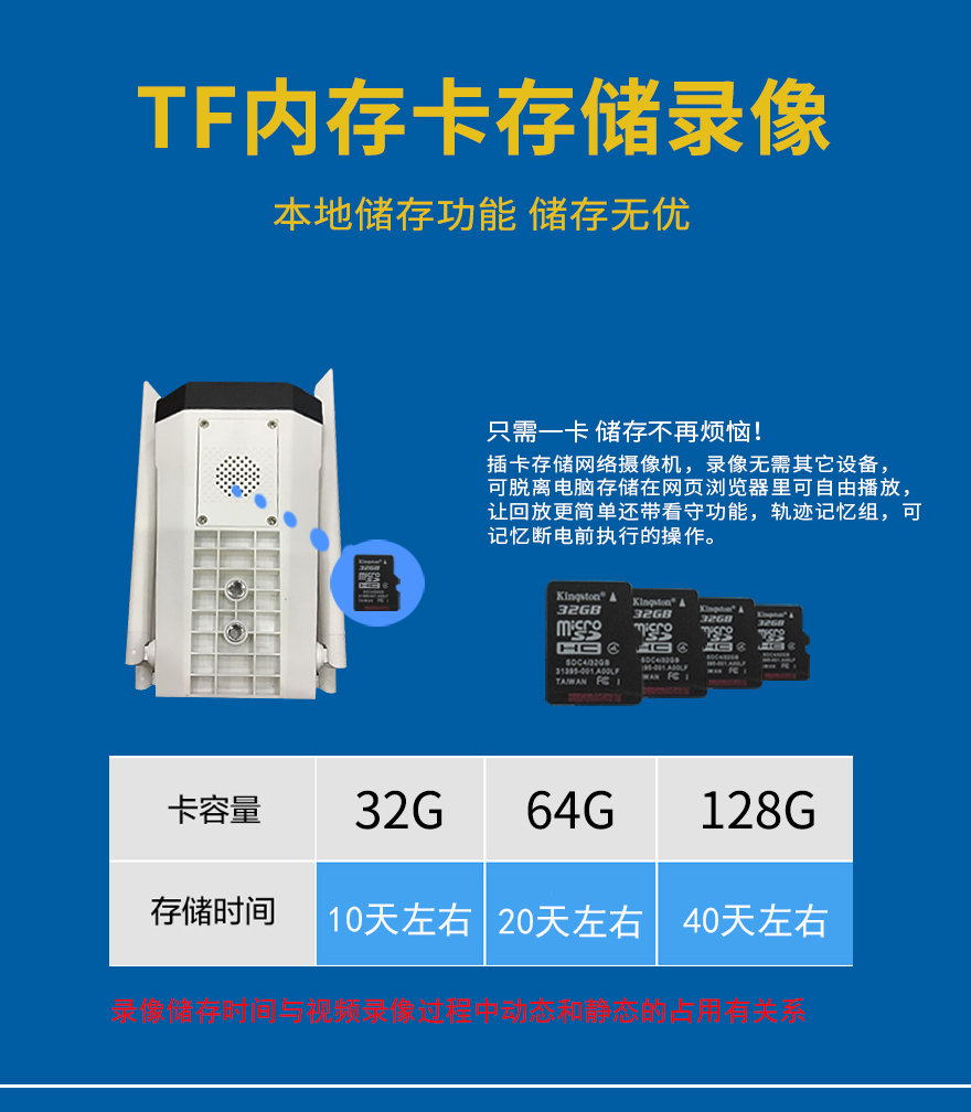 ★全天候環(huán)境設(shè)計(jì),可室外安裝,支持32/64/128G內(nèi)存卡;