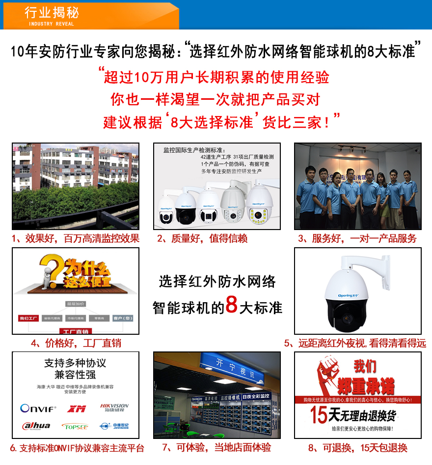 ★強大兼容性,支持標(biāo)準(zhǔn)的ONVIF,無縫對接??担笕A,雄邁CMS,美電威視AEVISION,Milestone等平臺,支持RTSP實時流協(xié)議,支持大華、???D控制協(xié)議;