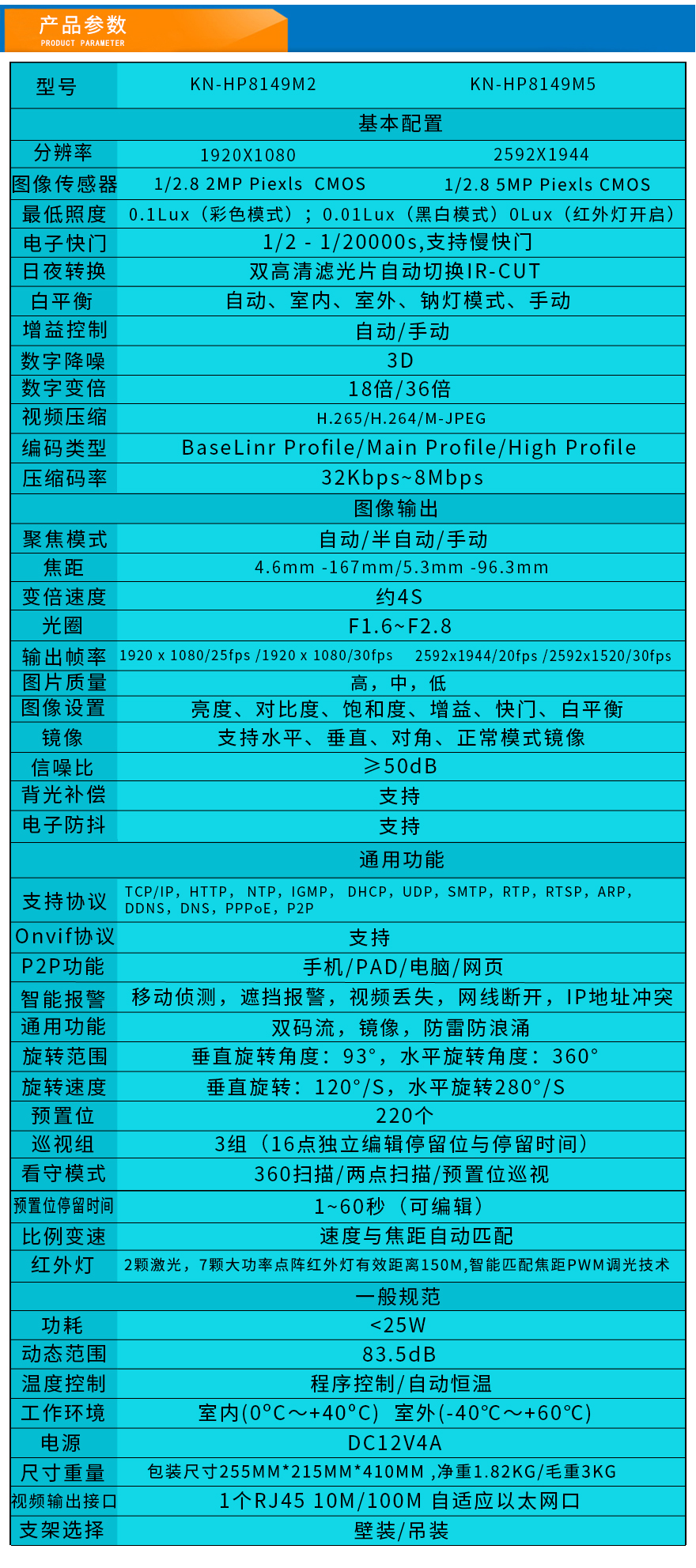 - 紅外防水網(wǎng)絡(luò)智能球機 KN-HP8149M2