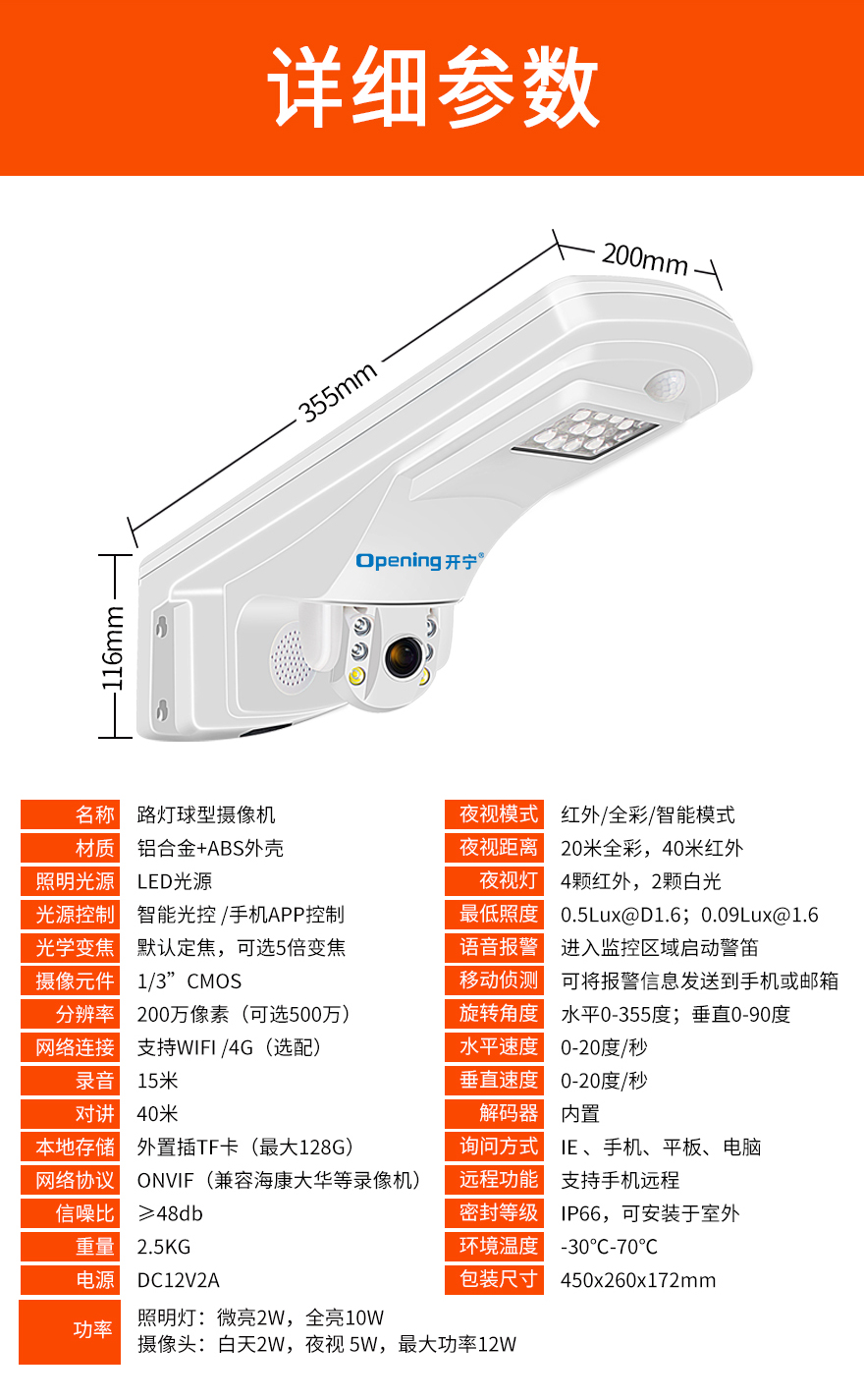 - 1、200萬(1080P)4G無線智能路燈全彩小球,一個機器=監(jiān)控系統(tǒng)+照明系統(tǒng);