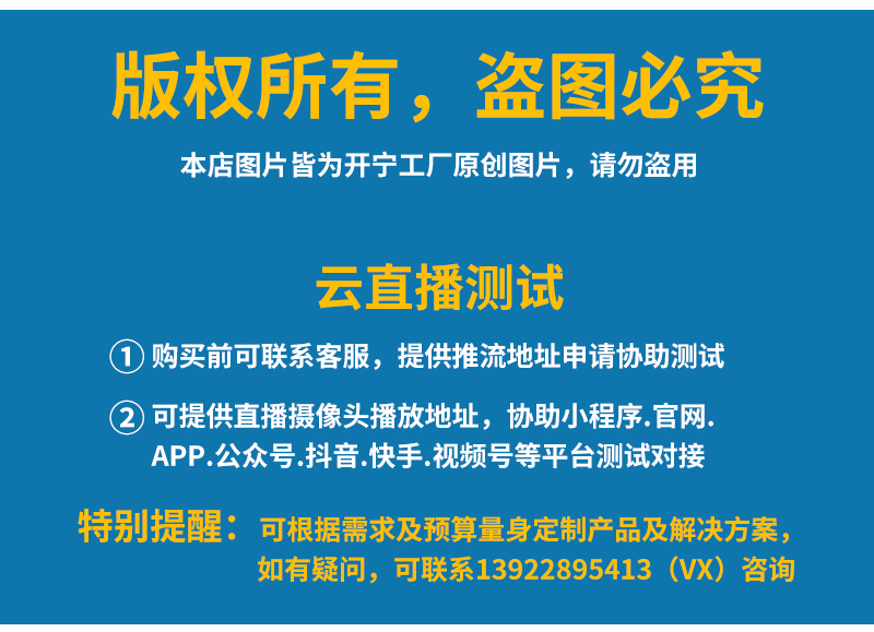 8、支持GB28181協(xié)議;可接公安.食品.工地.生產(chǎn).教育.畜牧.旅游等監(jiān)管部門平臺;