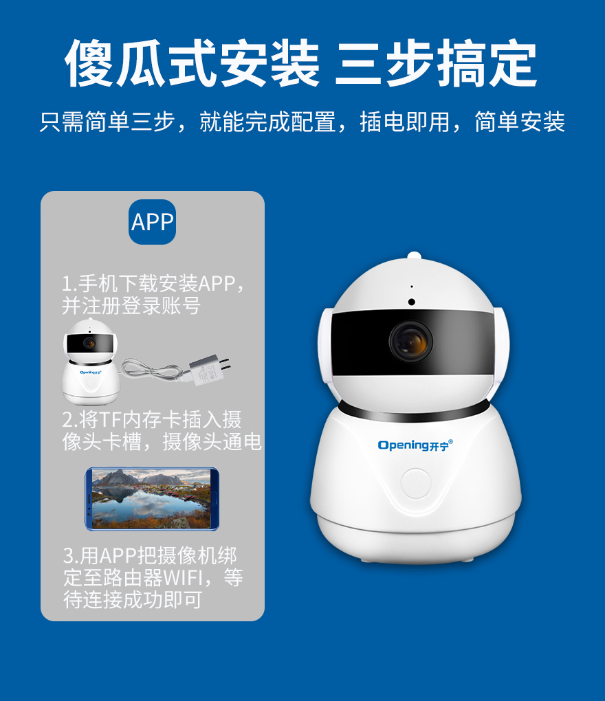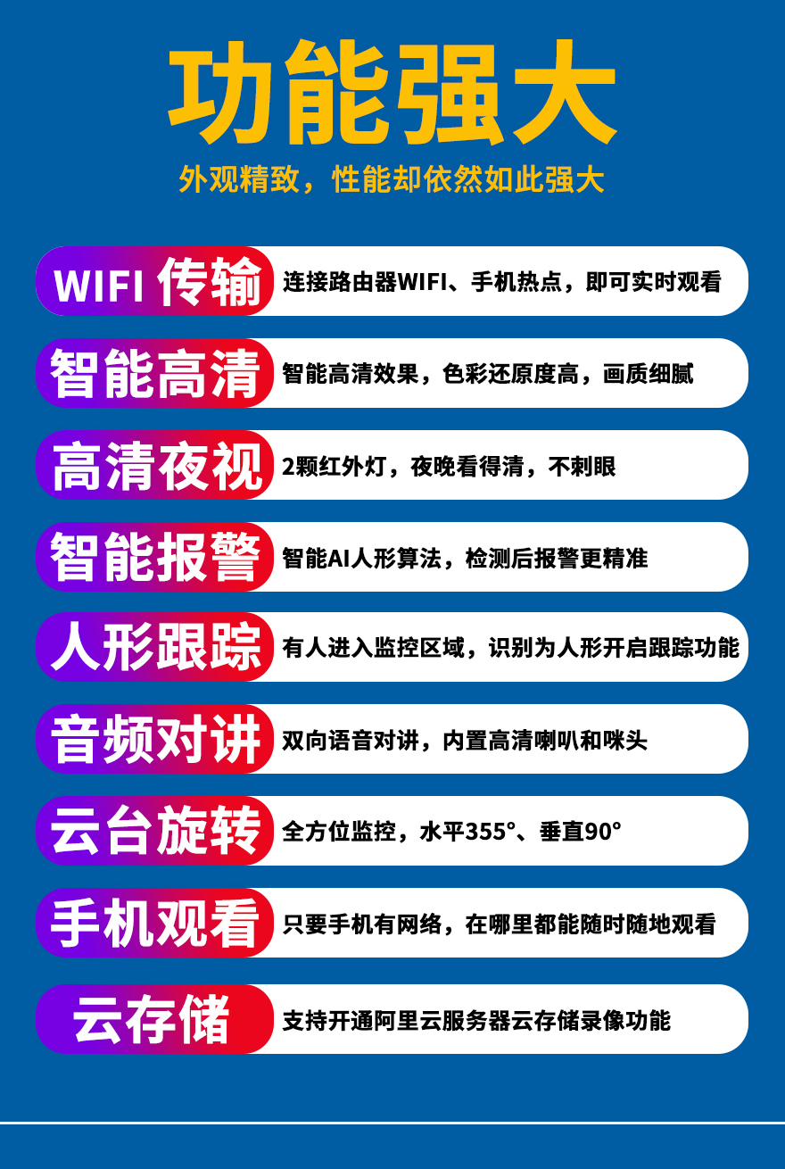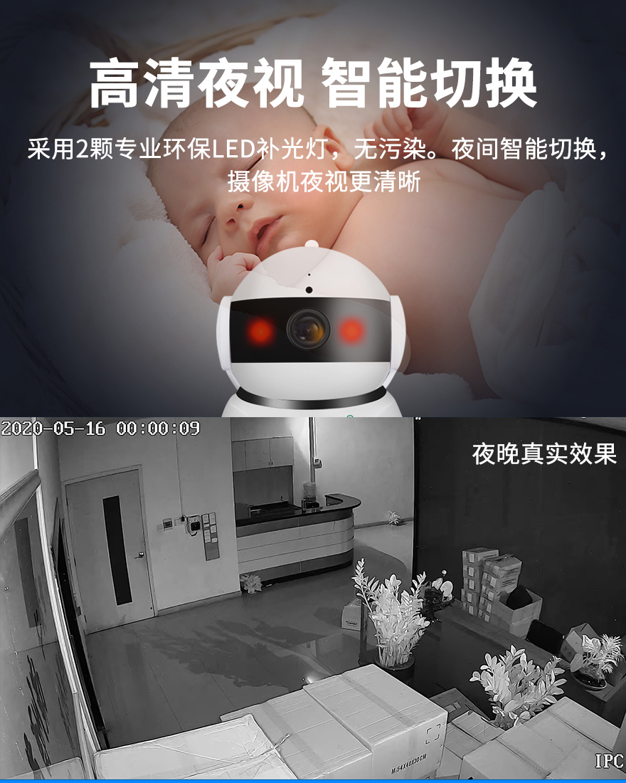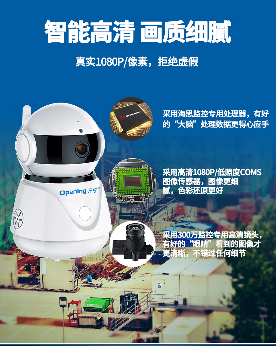 - 1.200萬(wàn)(1080P)室內(nèi)無(wú)線網(wǎng)絡(luò)高清搖頭機(jī),1個(gè)攝像頭就是1套監(jiān)控系統(tǒng);