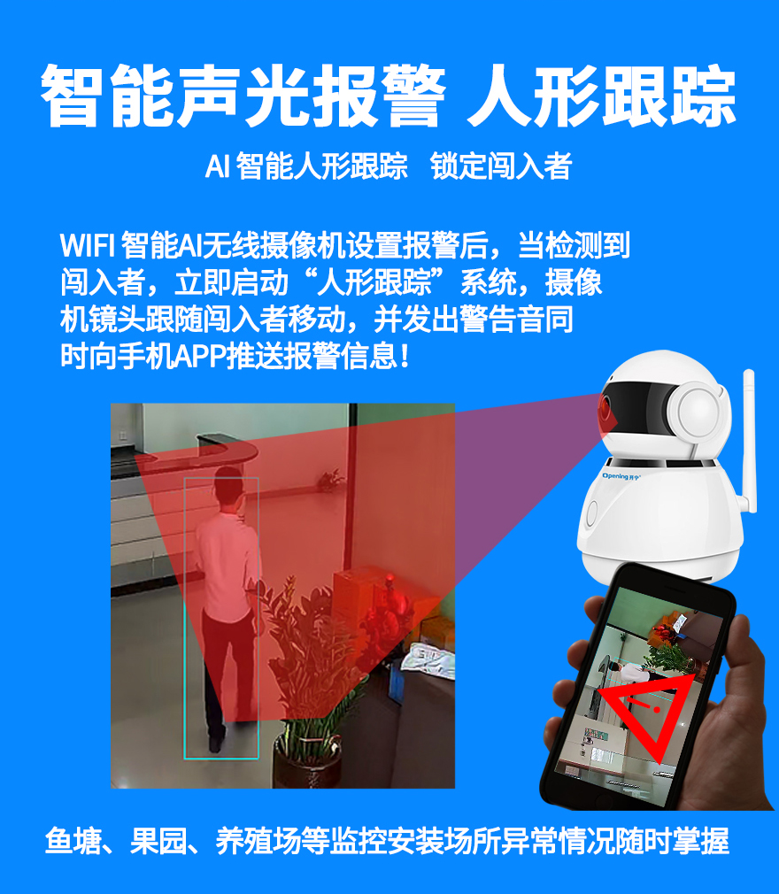 3. 智能AI網(wǎng)絡(luò)高清攝像機(jī),人臉人形檢測(cè),人形自動(dòng)跟蹤,智能語(yǔ)音警戒報(bào)警;