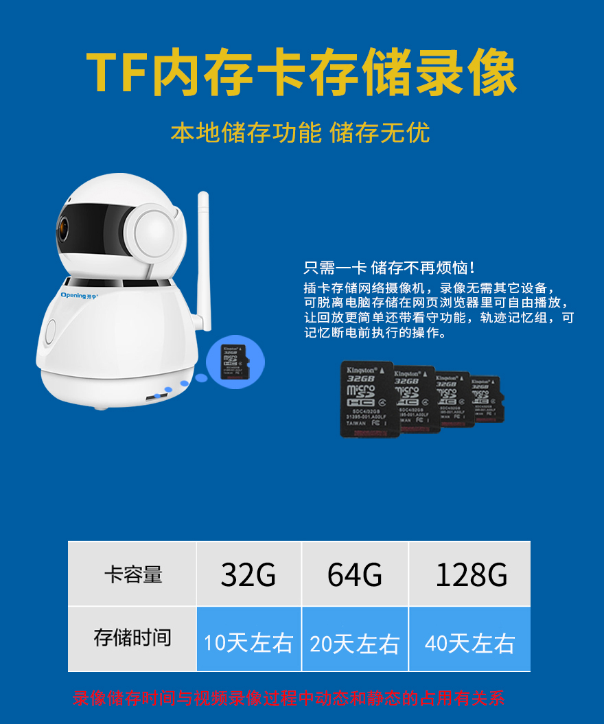 2. 海思H.265壓縮算法,超長(zhǎng)存儲(chǔ)錄像;最大支持256G存儲(chǔ)卡(60天左右錄像);