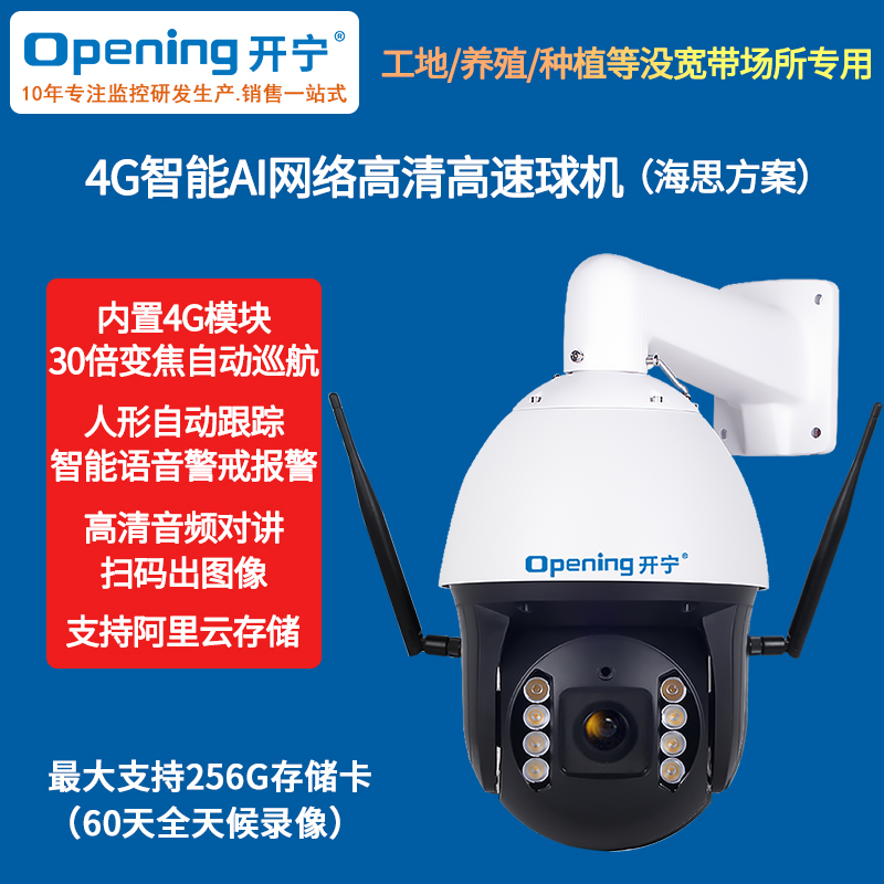 - 1、200萬(1080P)4G無線變焦智能高速球,一個球機就是1套監(jiān)控系統(tǒng);