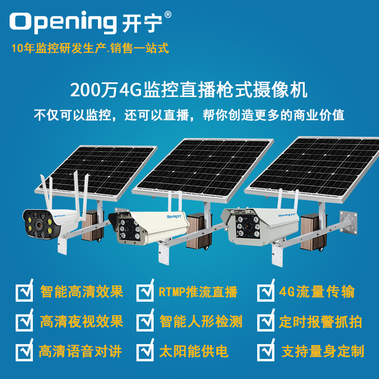 - 1、200萬/500萬4G智能監(jiān)控直播網(wǎng)絡(luò)高清防水?dāng)z像機(jī),一個(gè)攝像機(jī)就是一套監(jiān)控直播系統(tǒng);