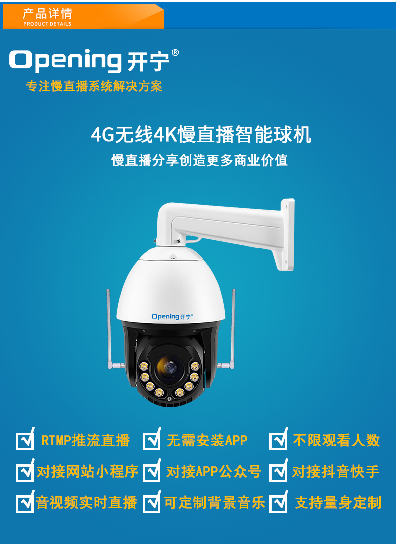 2、內(nèi)置智能4G模塊,沒(méi)有寬帶網(wǎng)絡(luò)的地方也能實(shí)現(xiàn)實(shí)時(shí)慢直播;