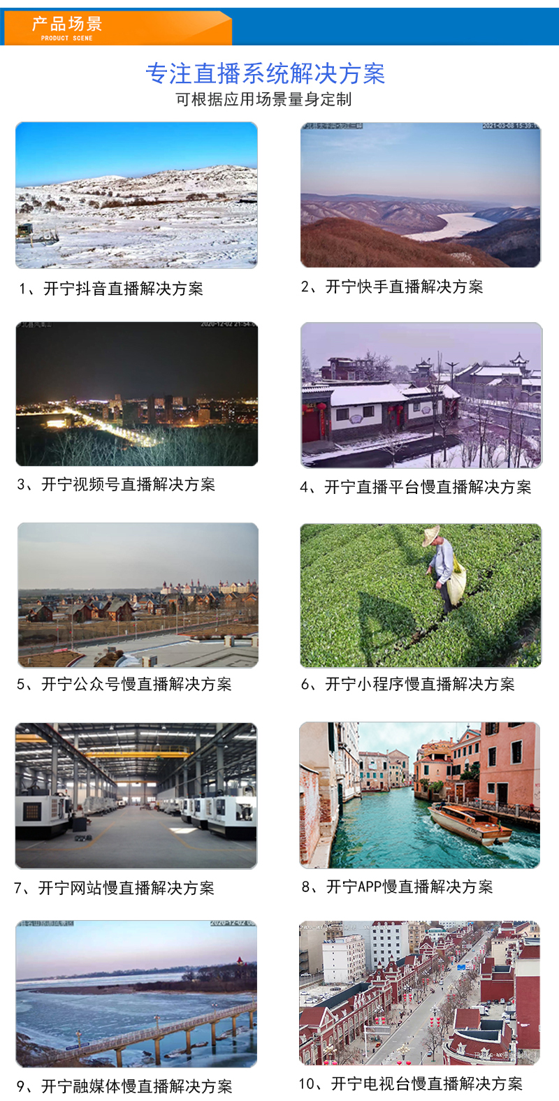 5、美景中國.城市慢直播.5G慢直播.融媒體慢直播.央視頻慢直播.交通慢直播.戶外慢直播等慢直播;