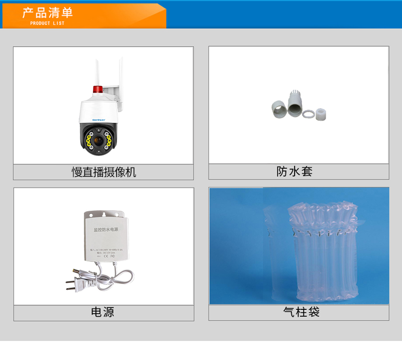 12、內(nèi)置高清保真拾音器,有聲有色實時直播;高清晰大功率喇叭,APP語音對講;DC12V供電;
