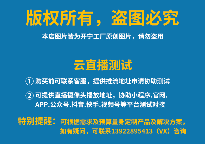 3、明廚亮灶.政府監(jiān)管.智慧工地.智慧農(nóng)業(yè).智慧社區(qū).景點(diǎn)直播.電視臺慢直播.融媒體慢直播.文旅慢直播.城市慢直播等24小時實(shí)時慢直播;