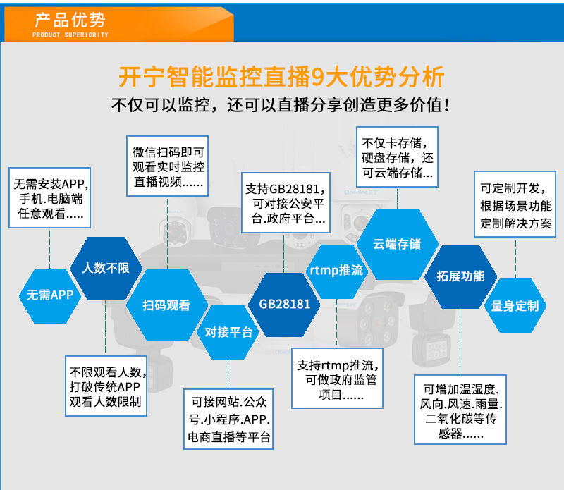 7、支持GB/T28181協(xié)議;可接公安.食品.工地.生產(chǎn).教育.畜牧.旅游等政府監(jiān)管部門平臺;