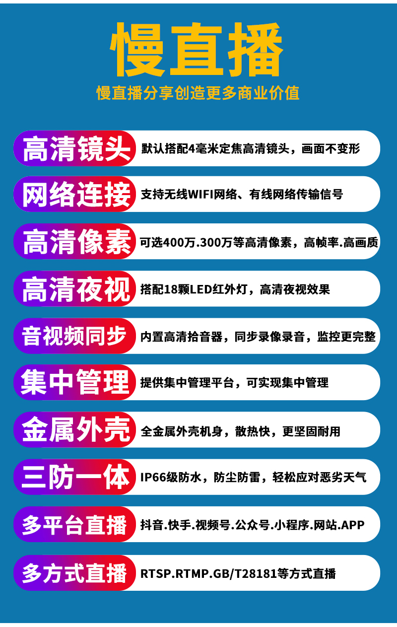 2、不僅可以監(jiān)控監(jiān)管,還可以實時慢直播分享創(chuàng)造更多商業(yè)價值;