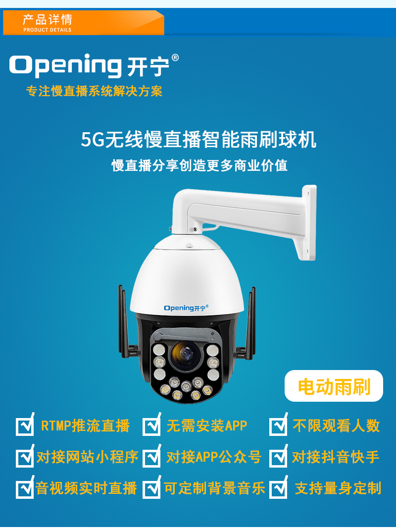 當(dāng)前位置:開寧首頁 > > 5G6寸全彩慢直播帶雨刷球機