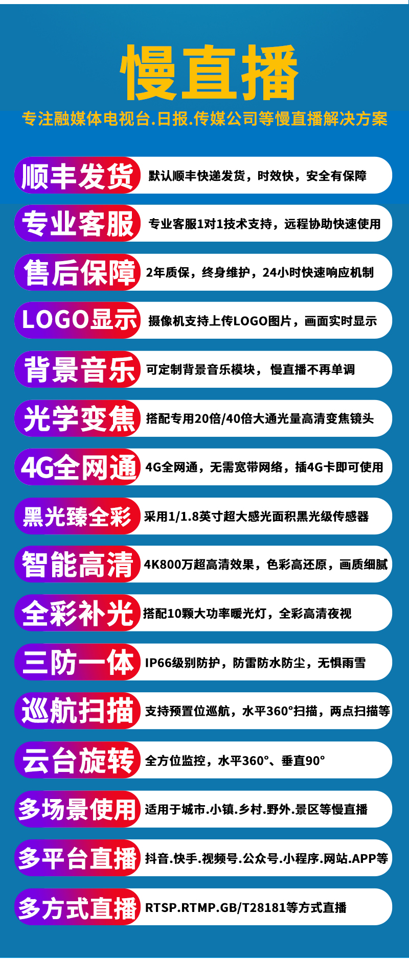 2、內(nèi)置智能4G模塊,沒有寬帶網(wǎng)絡(luò)的地方也能實現(xiàn)實時慢直播;